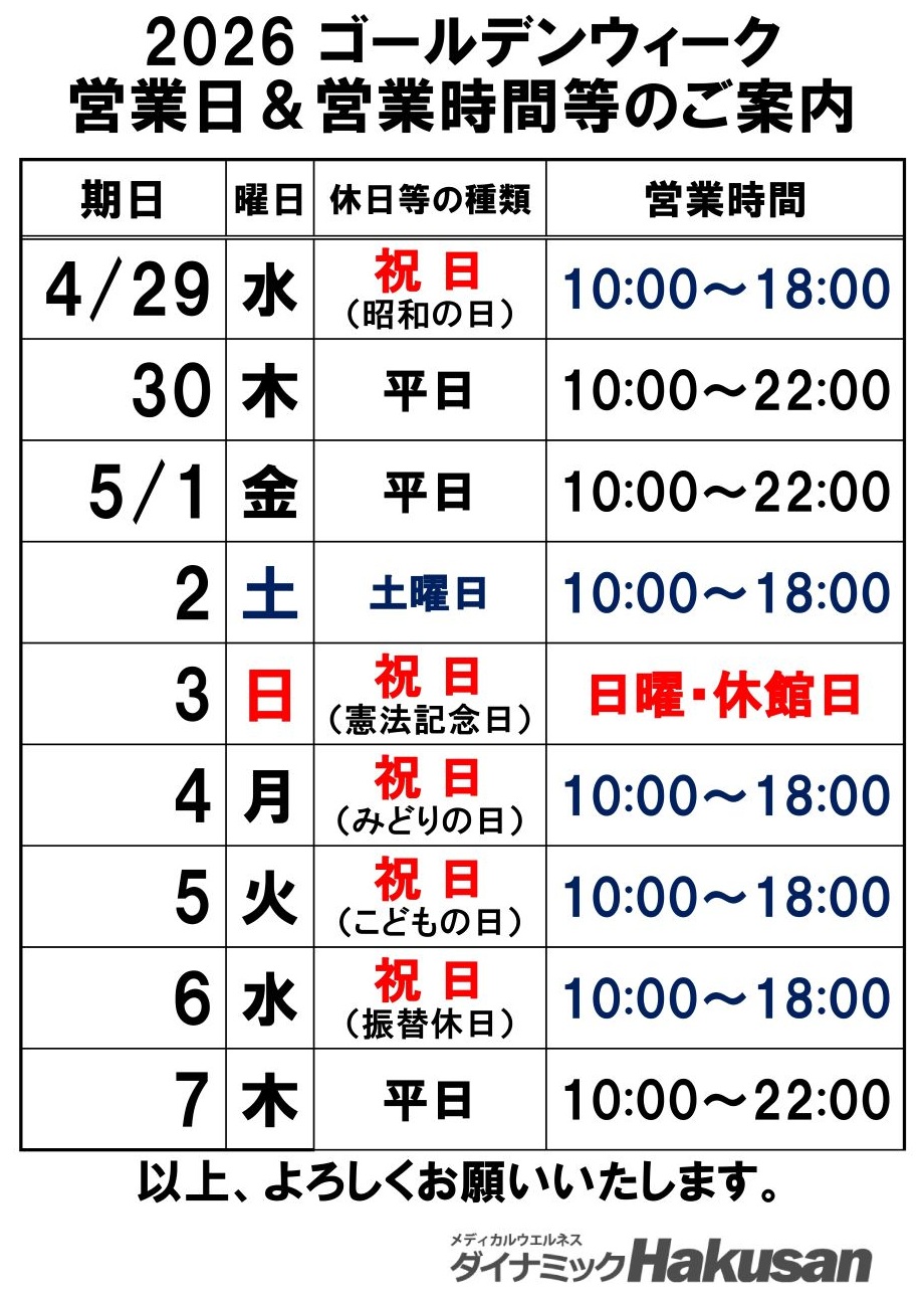 ゴールデンウイーク中の営業日と営業時間のご案内